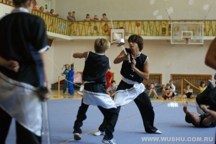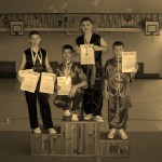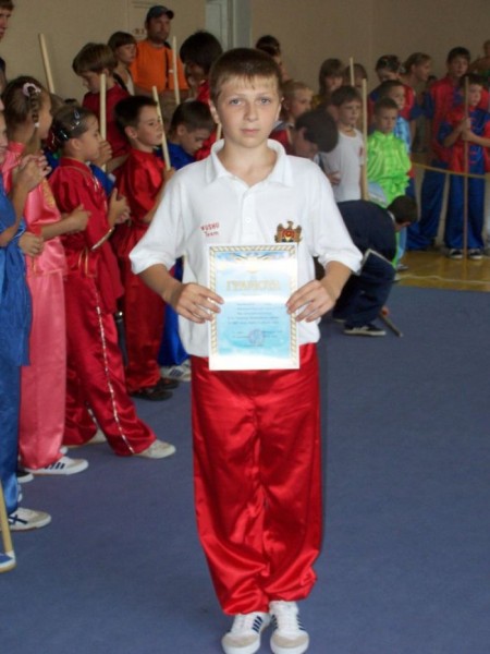 После упорной борьбы в своих традиционно многочисленных юношеских категориях (13-14 лет), наши адепты сумели 6 раз зайти на пьедестал победителей, показав следующий результат: Андрей Катарага – 1-ое место в разделе южный кулак (нань цюань), 1-ое место в южной сабле (нань дао). Не на много отстали коллеги по сборной. Владислав Сомник который занял 2-ое место в южном кулаке (нань цюань), 2-ое место в южной сабле (нань дао) и 3-е место в разделе техники шеста и южного шеста (гунь шу, нань гунь). Вычеслав Забун сумел выхватить в упорной «схватке» 3-е место в группе техники длинного кулака (чан цюань), где лидеры среди юношей были спортсмены из Бердянска и Запорожья.